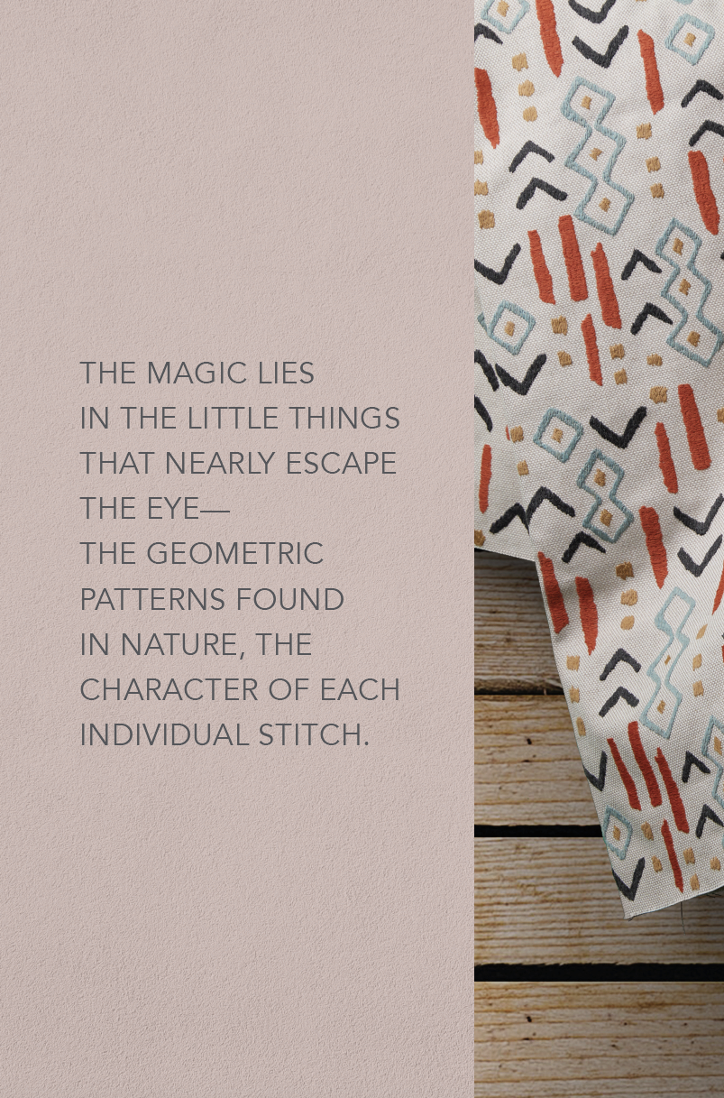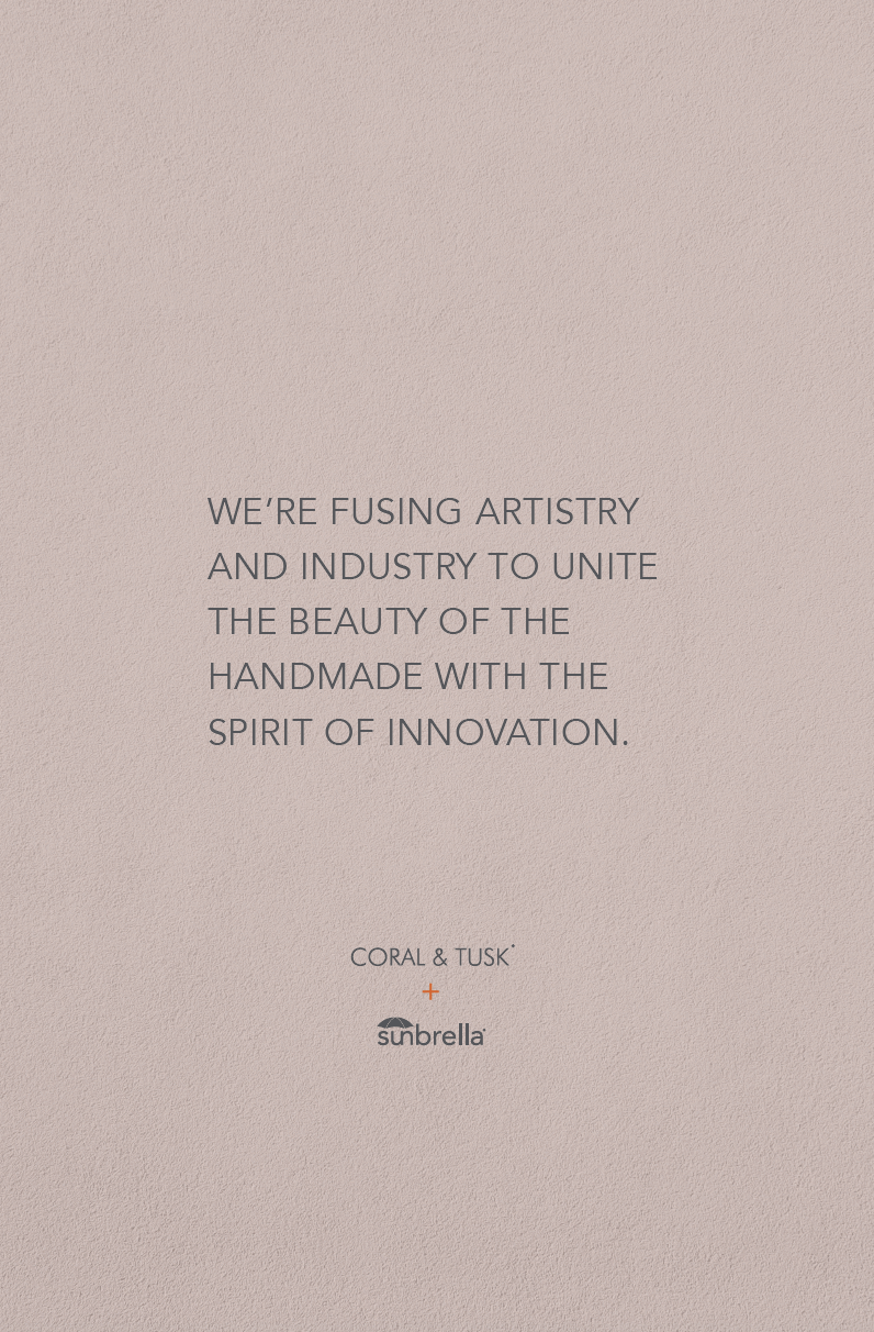 In writing the content, I wanted to elevate the fact that this partnership brings the luxury of a keepsake to a category of manufacturing that doesn’t typically strive for sustainability. Sunbrella is a long-lasting performance fabric that reduces the need to reupholster household furniture long past conventional fabrics. With the delightful personality of Coral & Tusk owner and artist Stephanie Housley woven into each fabric, the collection truly honors both craft and conscious consumption of materials.