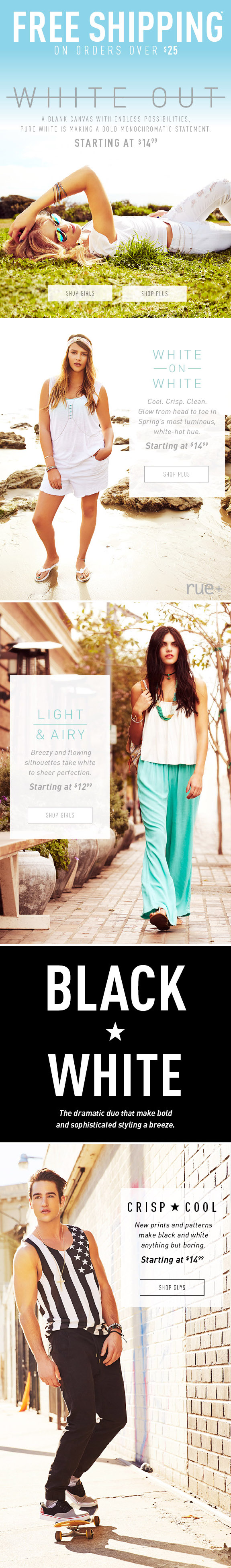In addition to developing a brand standard and training additional copywriters for teen fashion retailer rue21, I was recruited to boost engagement in their email marketing. Swapping heavy, messy content blocks with too many calls to action, I focused on developing tight and engaging copy with a single CTA that captured rue21’s signature playful style. I was proud to see opening and clickthrough rates rise by about 5% during my time at rue21.